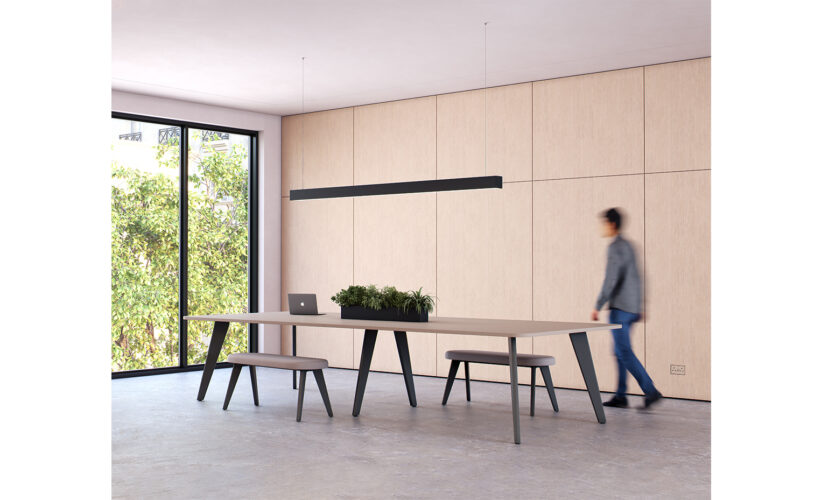 Arby is Moventi’s latest wooden legged furniture family. The collection features bench desks, standalone workstations, collaboration tables and meeting room tables.