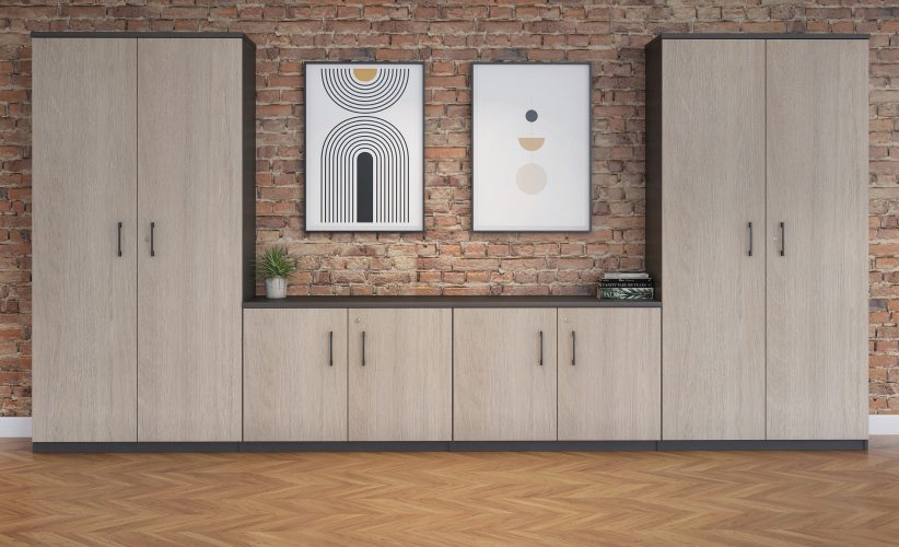 - Cupboards feature adjustable ladder strips allowing shelves and alternative fittings to be easily repositioned